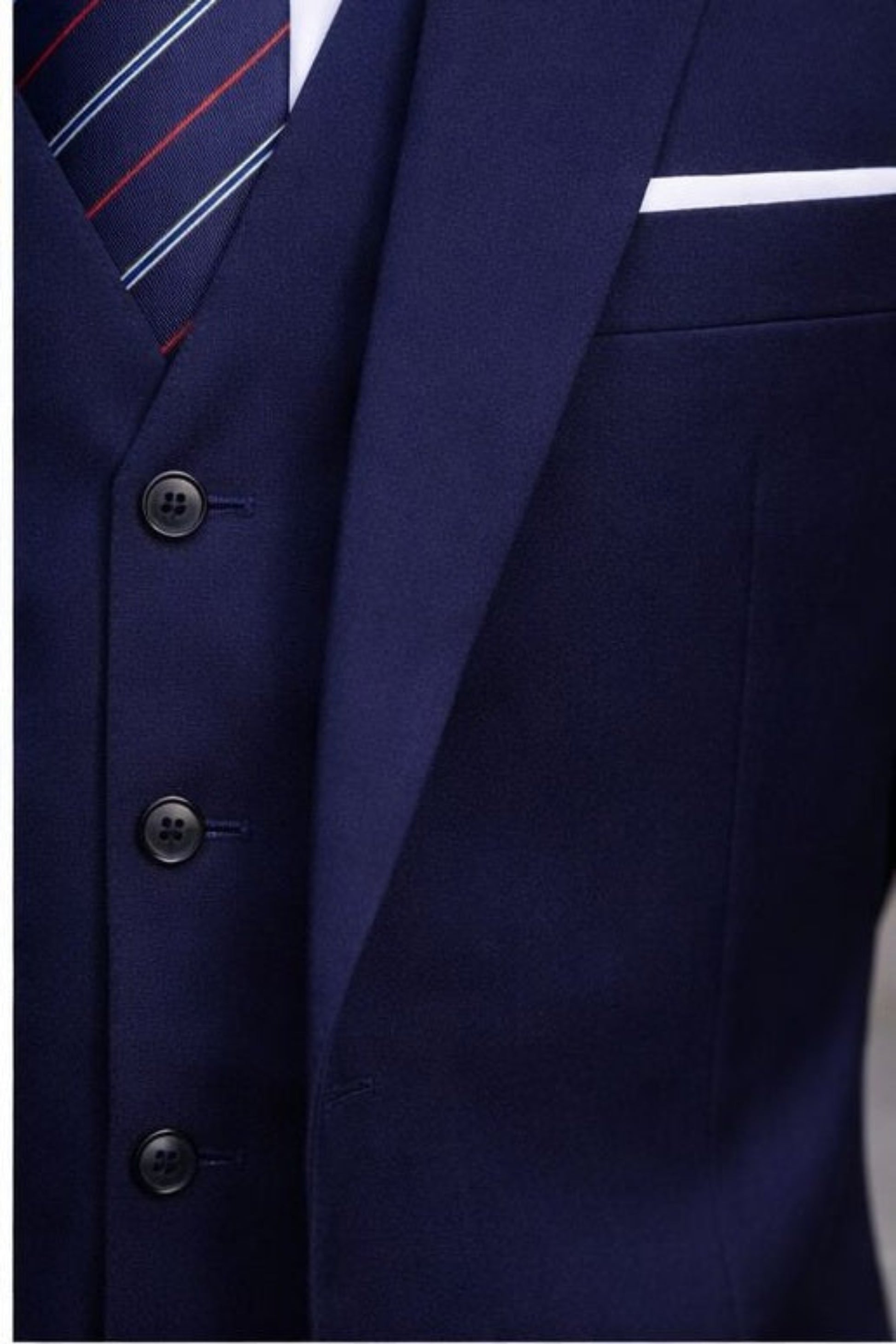 Abito uomo elegante blu tre pezzi, dal taglio moderno e raffinato.