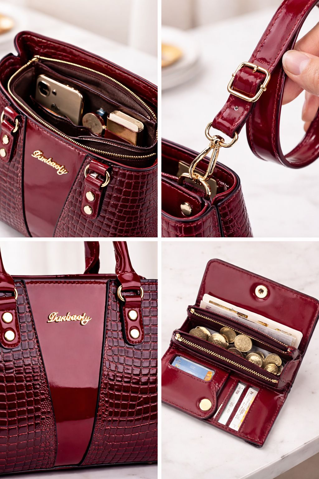 Borsa Luxury Croco Gloss – Set Elegante con Pochette Abbinata)