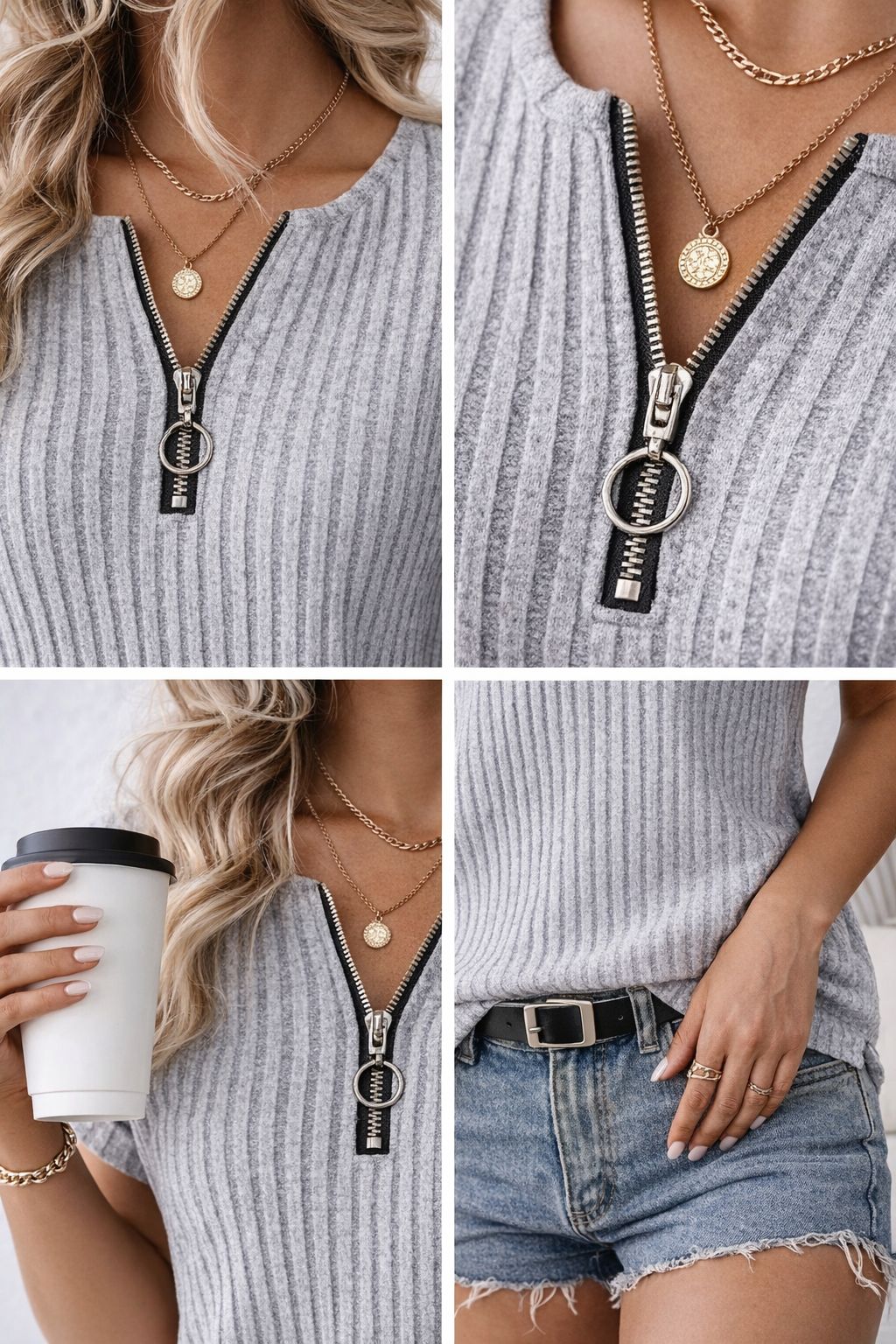 Maglia Donna a Costine con Zip Frontale – Casual Chic Primaverile